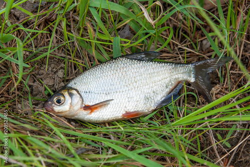 Close up view of the signle white bream or silver fish on the natural background. .