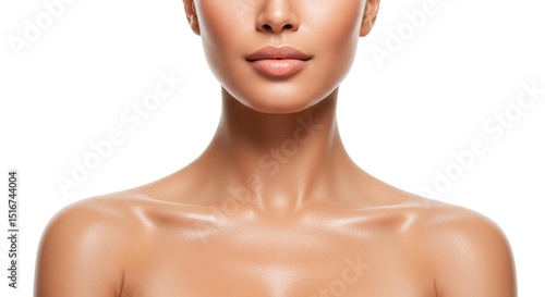 face, neck, shoulder, woman, skin, beauty, lip, nose, clavicle, body, human, female, portrait, torso, anatomy, health, model, care, part, young, adult, person, lifestyle, closeup, fresh, clean, head, upper, front, view, isolated, background, white, healthy, shiny, smooth, natural, tone, tan, aesthetic, wellness, youth, sensual, glamourous, elegant, graceful, bosom, close