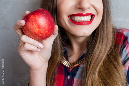apple, woman, eat, healthy, beautiful, girl, beauty, young, face, background, diet, food, fresh, female, portrait, health, red, lifestyle, vitamin, caucasian, smile, toothy, teeth, closeup, closeup, dental