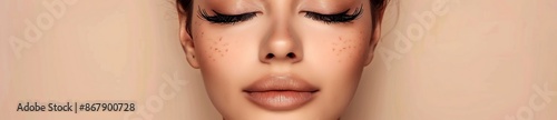closeup, face, woman, eye, closed, eyelash, long, full, lash, make-up, beauty, model, freckle, skin, smooth, lip, naked, glossy, neutral, natural, beautiful, honed, glowing, youthful, fresh, attractive, healthy, clear, bright, soft, pretty, adorable, charming, gorgeous, radiant, innocent, feminine, gentle, elegant, sophisticated, stylish, fashion, photo, portrait, studio, light, background