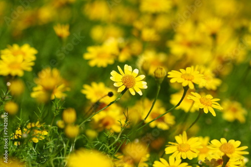 close up yellow flower field