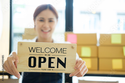 Close up Young business owner open the coffee shop.