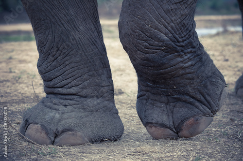 (Close up)Asian elephant's feet, elephants walking on the floor, the feet of a large elephant ,Wildlife and nature,