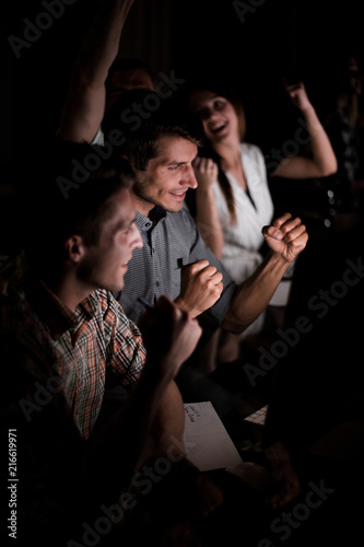 close up.happy team of like-minded people sitting at the Desk