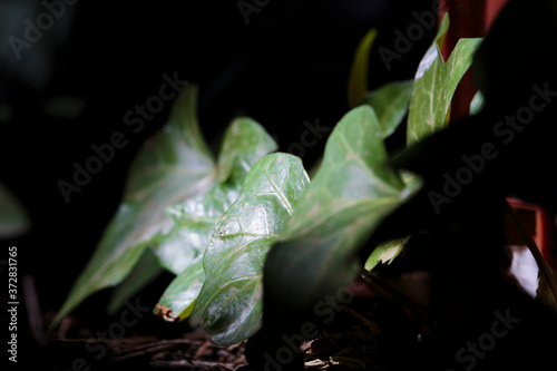 Close upp of green leaves in dark background