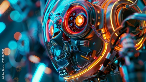 close, view, robot, vibrant, sensor, illustrate, intersection, art, ai, technology, calibration, ingenious, creation, cybernetic, aesthetic, mechanism, algorithm, perception, artist, inventor, precision, sensory, convergence, prototype, creative, innovation, aperture, advance, intelligence, visual, inspiration, engineering, progressive, artificial, efficiency, colourful, synthetic, creator, futuristic, development