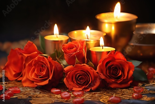 flower, candle, bead, rose, romantic, decoration, still life, closeup, decorated, dark, black, holiday, festive, nobody, gift, light, night, indoor, evening, decorative, garland, decorate, celebration, gold, red, gloaming, background, valentine, rose, flower, love, romance, beauty, blossom, floral, beautiful, bud, candle, bloom, leaf, bouquet