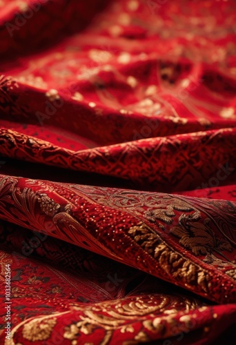 close view stunning vibrant red textile patterns showcasing intricate designs rich textures, artistic, colorful, textured, fabric, decorative, creative
