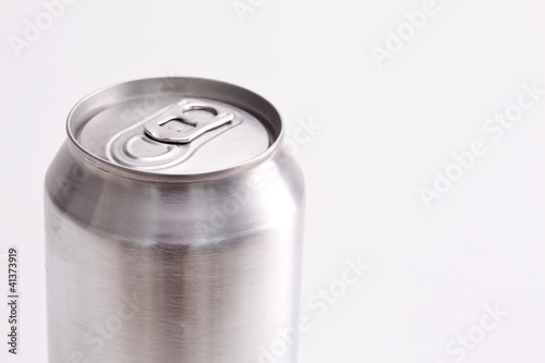 no people, background, closeup, copy space, single object, studio shot, white background, aluminium, beverage, drink, can, closed, metal, silver, blank