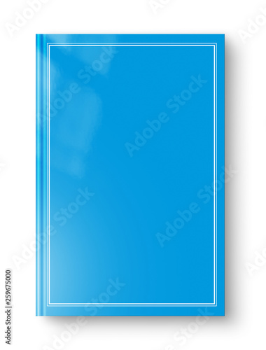 Closed blue blank book with frame isolated on white