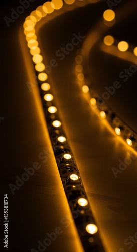 close-up of a geometric shapes, led strip warm light in aluminum channel diffuser, LED strip light, warm glow,