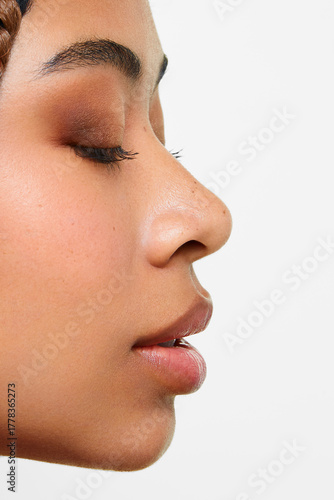 Close-up beauty profile portrait with soft glam