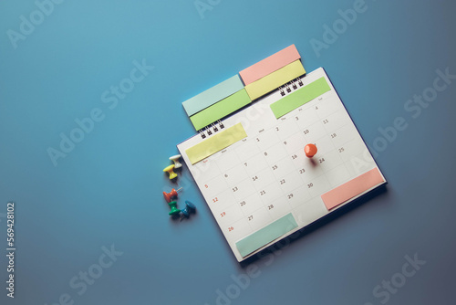 Closeup calendar page with drawing-pins , planning for business meeting or travel planning concept