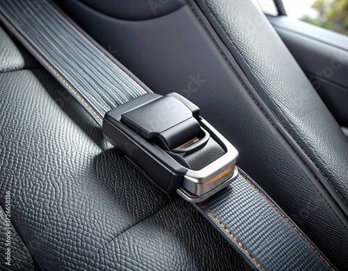 seatbelt, buckle, safety, car, interior, black, leather, automotive, restraint, passenger, vehicle, transportation, design, detail, closeup, modern, secure, protection, fasten, clip, latch, harness, padded, comfort, ergonomic, industrial, orange, stitching, detailing, functional, mechanism, tech, fabric, component, part, closeup, close, dependability, regulation, innovation
