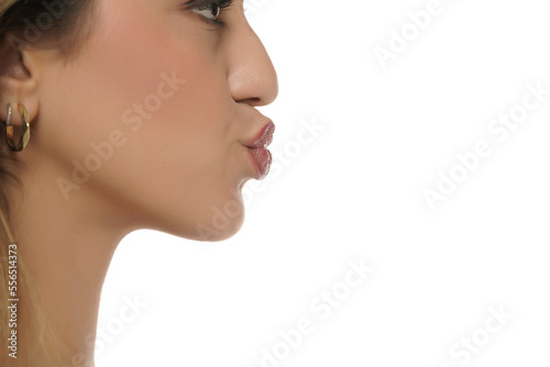 closeup, lip, mouth, kiss, kissing, gesture, woman, face, nose, neck, earring, pursed, profile, side, view, closeup, close, up, macro, make-up, pink, lipstick, cosmetic, young, female, pretty, person, beauty, caucasian, health, make-up, model, skincare, care, clean, fashion, healthy, fresh, make up, cheek
