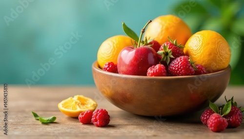 Close-up, empty bowl, untouched fruits, fasting, concept, self-care, background