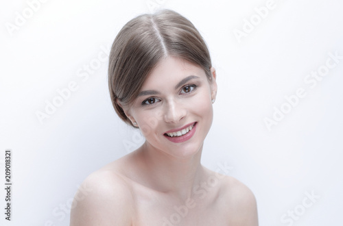 closeup face of a beautiful young woman.