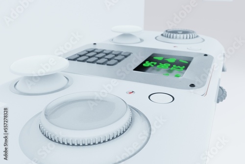 close-up gamepad console controller for video games with buttons, sticks and led digital display. 3d render illustration