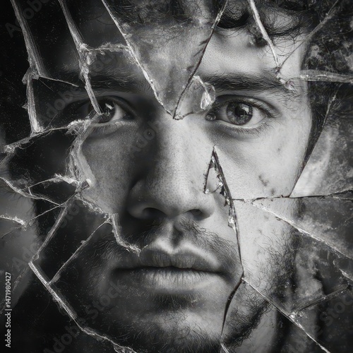 man, portrait, greyscale, shattered, glasses, face, close, up, emotion, distress, vulnerability, pensive, serious, troubled, intense, eye, sharpened, expression, broken, dark, light, shadow, detail, image, photo, black, white, masculine, human, powerful, fragile, concerned, seriousness, thoughtful, sorrowful, anxiety, unhappy, depressed, melancholy, visual