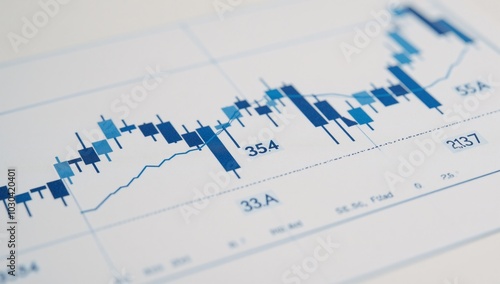 Close-up image of a blue stock market trading chart with detailed candlestick graphs