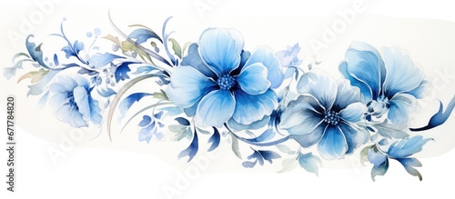 Closeup image of a floral design titled Blue Flower Triplets created with a combination of watercolor and acrylic paints on Canson watercolor sheets This artwork is ideal for generating ins