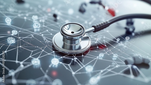 close-up image of a stethoscope resting on a clean white surface,