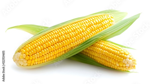 closeup, image, corn, act, raw, produce, cultivated, through, organic, farming, isolated, pure, white, background, visible, greenery, edible, plant, reflecting, clean, label, wholesome, nature, supportive, diet, capturing, natural, harvest, freshness, whole, food, epicure, ingredient, culinary, staple, crop
