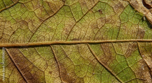 leaf, vein, pattern, texture, closeup, macro, detail, green, brown, nature, biology, botany, flora, plant, surface, structure, organic, natural, environment, autumn, seasonal, dead, decay, veined, detailed, daylight, thin, rough, dried, dying, foliage, autumn, withered, background, design, element, art, growth