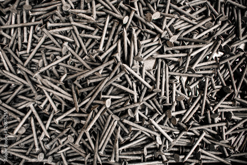 closeup nail display steel nails pile studio sales working building materials workshop background construction backdrop