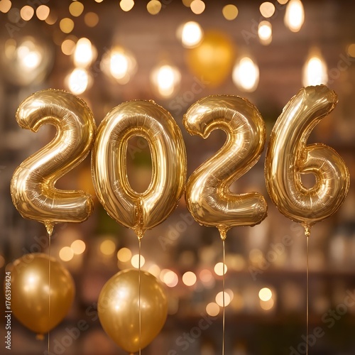 balloon, gold, 2026, new year, happy new year, party, festive, celebration, new year, decor, holiday, sparkle, shimmer, luxury, light, glow, shine, closeup, bright, metallic, elegant, background, sharpened, blur, glistering, event, warm, cheerful, modern, bokeh, joyful, night, number, three-dimensional, gold, year