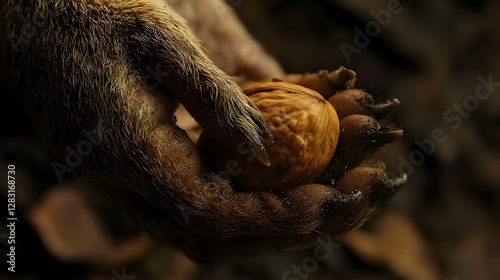 bear, paw, walnut, forest, closeup, nature, wildlife, autumn, animal, food, claw, grip, texture, earthy, brown, organic, forest floor, wild, foraging, natural, habitat, paw, furry, claw, hand, environment, seasonal, outdoors, rustic, detailed, timberland, nut