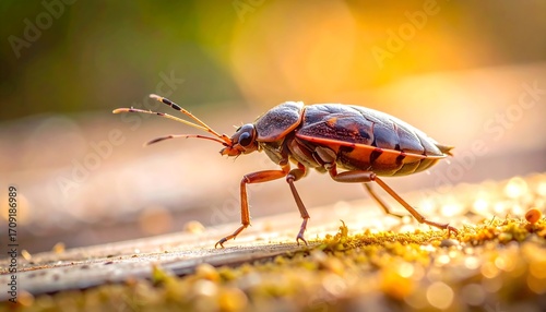 beetle, insect, macro, nature, wildlife, closeup, walking, brown, red, spotted, detail, sunlight, moss, wood, forest, insect, animal, photo, sun
