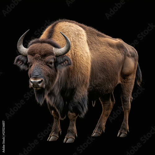 bison, black background, muscular, photogenic, natural, wild, nature, majestic, striking, impressive, bold, powerful, detailed, serene, distinctive, elegant, rural, agricultural, cultural, strength, presence, eye-catching, prominent, focused, rugged, dramatic, beautiful, captivating, fascinating, textured, closeup, wildlife, animal, mammal, high-coloured