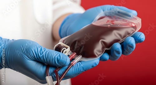 blood, bag, medicals, health care, donation, health, gloved, hand, red, background, closeup, tube, equipment, medicine, hospital, donor, patient, care, safety, sterile, giving, life, saving, support, humanity, helping, vital, essential, important, necessary, critical, caring, compassionate, professional, doctor, nurse, assistance, treatment