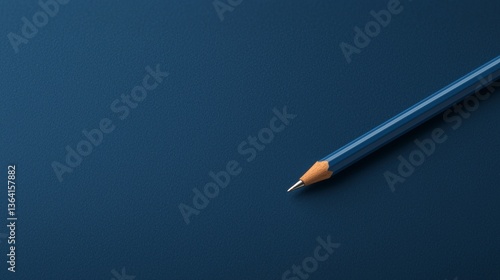 Close-up of a blue pencil on a textured dark background