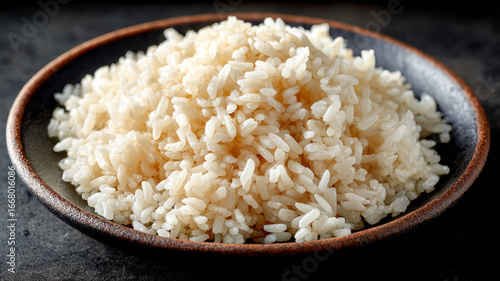 Close-up of a bowl of cooked white rice.