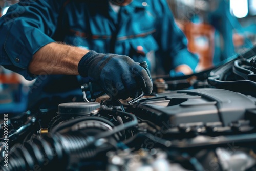 Close-up of a car repair service technician in a car repair station