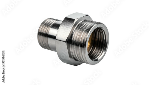 fitting, pipe, chrome, metal, plumbing, adapter, connector, hardware, connection, male, female, threaded, shiny, silver, water, gas, fluid, industrial, closeup, isolated, detail, stainless, steel, part, assembly, construction, supply, equipment, engineering, structure, building, infrastructure, workshop, tool, accessory, bright, clean, smooth, polished, mechanical, object, product, isometric, perspective, utility, bricolage, element, precision, repair