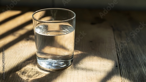 Close-up of a Clear Glass of Water on Wood