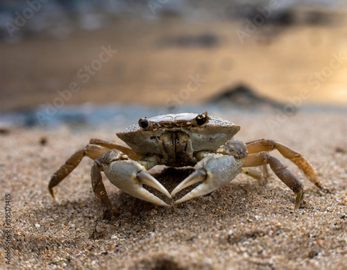Close-up of a crab in the sand on the beach
