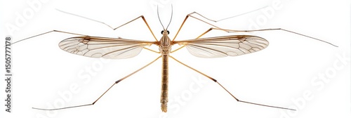 insect, macro, closeup, wing, leg, nature, wildlife, photo, fauna, invertebrate, arthropod, diptera, long legs, delicate, detailed, white background, isolated, scientific, bug
