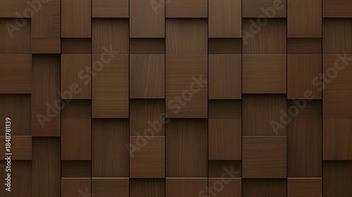 Close-up of a dark brown wooden block wall with a staggered panel texture and subtle 3D depth