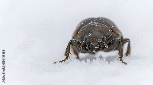beetle, insect, bug, snow, winter, cold, wildlife, nature, animal, macro, closeup, photo, fauna, arthropod, invertebrate, creature, crawling, ground, surface, white, black, brown, leg, antennae, head, body, eye, detail, small, tiny, glacé, environment, habitat, exterior, wild, life, organism, specimen, view, image, picture, photograph, shot, still