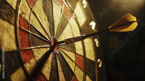 Close-up of a dart hitting the bullseye, symbolizing precise achievement of business goals and objectives