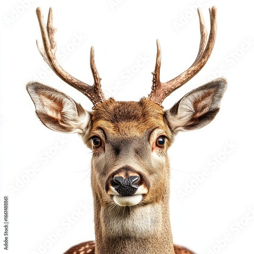cervid, antler, head, portrait, closeup, wildlife, animal, mammal, brown, spotted, sharpened, nature, portraiture, zoology, front, eye, nose, mouth, face, horizontal, vertical, isolated, white, background, symmetry, detail, texture, fur, forest, park, savanna, wild, east, asia, japan, red, pale, grey, calm, cute, friendly, gentle, mammalian, autumn, spring