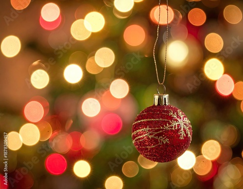 christmas, ornament, red, glistering, holiday, decoration, festive, bokeh, light, sparkle, hanging, tree, closeup, detail, bright, gold, round, bauble, vibrant, celebration, season, winter, december, joyful, shine, beautiful, pattern, delicate, elegance, traditional, cheer, joy, family, present, warmth, glow, magical, anticipation, bliss, love, merriment, happiness, delight, tradition, spirit, gift, hope
