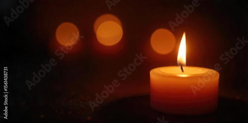 Close-up of a flickering candle flame, soft warm light illuminating the surrounding darkness Perfect for themes of romance, relaxation, spirituality, and tranquility , background, comfort