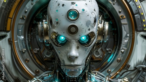 robot, android, artificial, intelligence, cyborg, machine, technology, futuristic, science, fiction, digital, innovation, automation, ai, android, mechanical, electronic, computer, system, network, circuit, screen, eye, face, head, metal, gear, engine, control, panel, design, power, energy, future, progress, modern, concept, development, research, experiment, vision, datum, structure, complex, glow, light