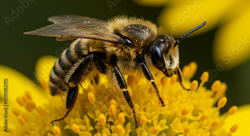 bee, insect, yellow, flower, pollen, closeup, nature, macro, animal, striped, bloom, blossom, fauna, flora, nectar, wildlife, invertebrate, spring, detail, foraging, wing, hairy, flower petals, apis, pollination, entomology, buzzing, honey bee, wildflower, garden, summer, vibrant, natural, environment, biology, ecological, ecosystem