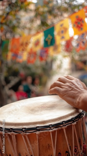 chilean, drum, hand, playing, traditional, music, cultural, event, festive, atmosphere, celebration, colourful, banner, rythm, percussion, art, craft, performance, vibrant, heritage, sound, community, gathering, hand-made, local, tradition, season, musician, entertainment, lively, expression, time, spirit, joy, folk, life events, melody, social, form, instrument, pride, festival, instrument, craftsmanship, audience, decoration